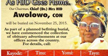 Hannah Idowu Dideolu Awolowo (née Adelana; November 25, 1915 – September 19, 2015), popularly known...